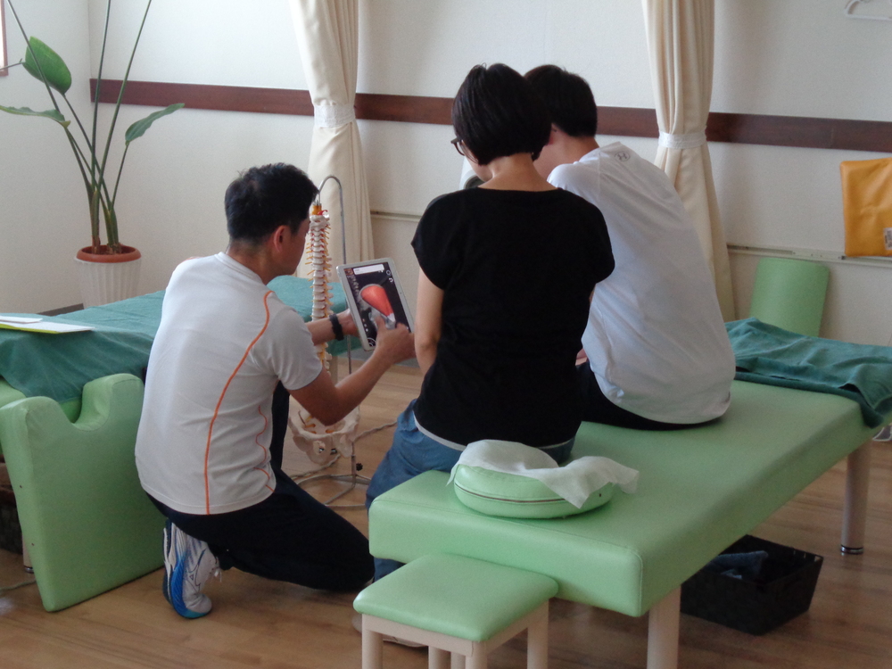 身体の状態を共に確認していただき、筋肉の硬直、癒着、柔軟性、可動域、疲労状況、痛みの原因、ケガの予防、セルフケアの大切さ、痛みの緩和など、身体のビフォーアフターを知っていただくことで、ボディメンテナンス、コンディショニングの大切さを伝えています。