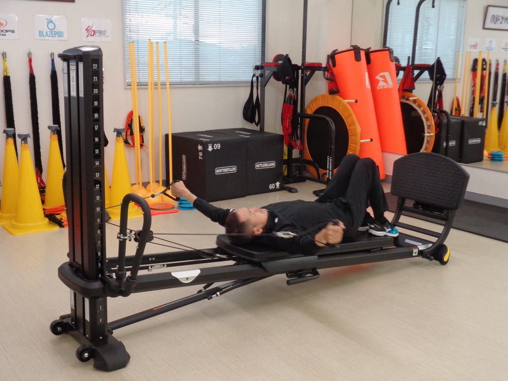 従来のウエイトマシンとは異なり、筋力強化と共に関節可動域の向上も図れるのが特徴。