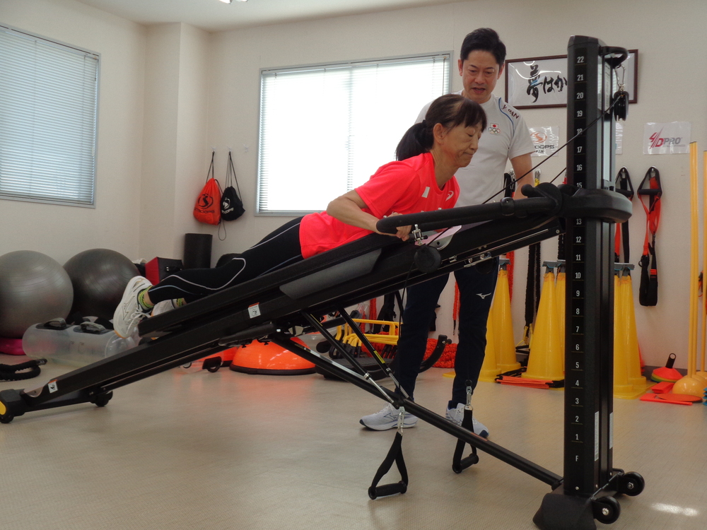 従来のウエイトマシンとは異なり、筋力強化とともに関節可動域の向上も図れるのが特徴です。