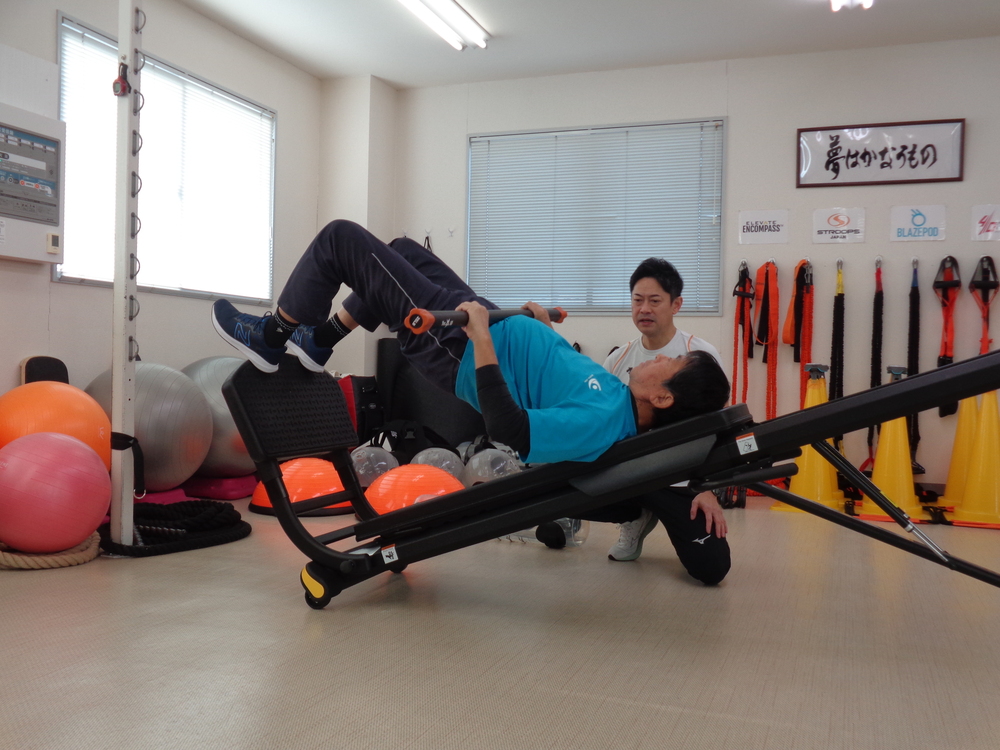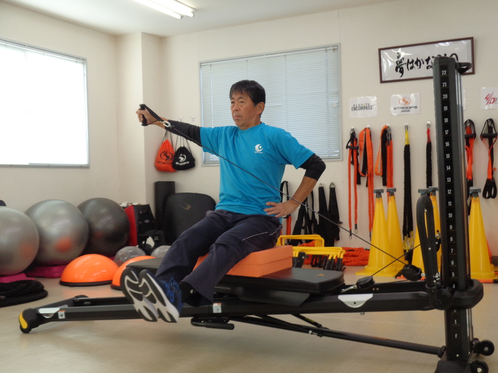 従来のウエイトマシンとは異なり、筋力強化とともに関節可動域の向上も図れるのが特徴です。